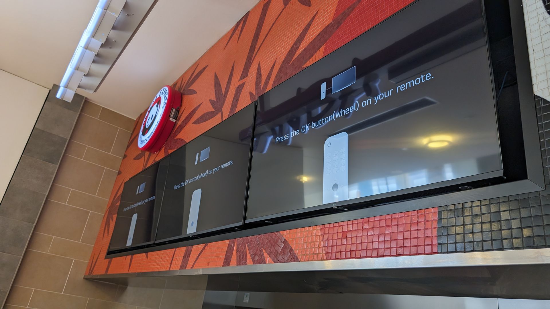 Tvs mounted side by side for panda express at the southdale mall
