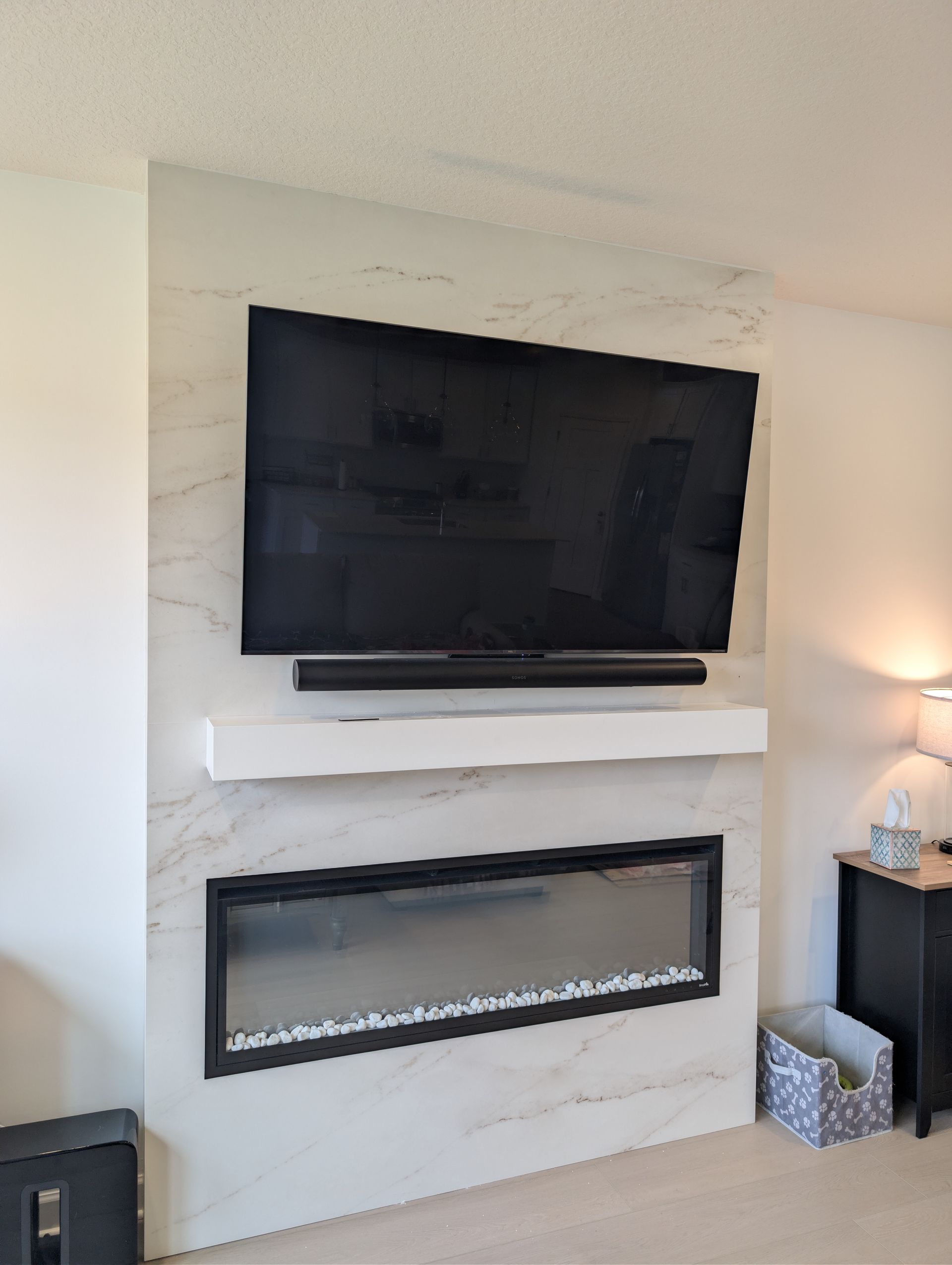Tv and Soundbar Mounting on a marble surface